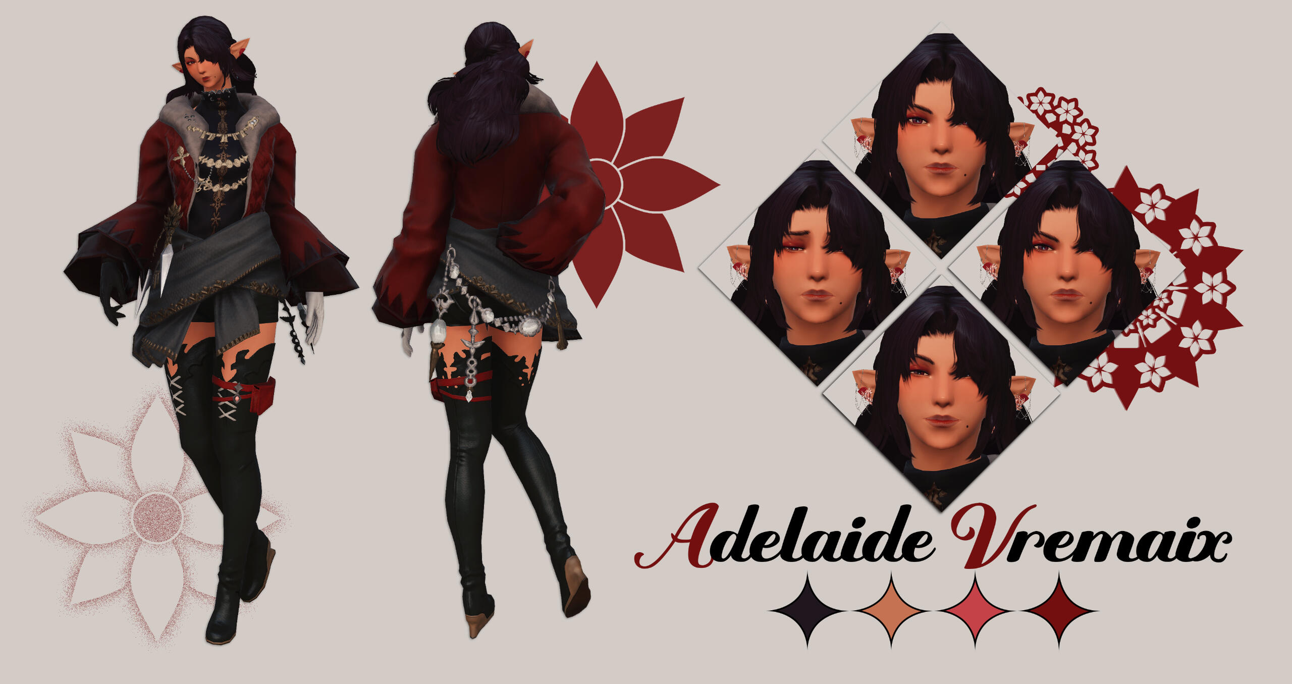 Adelaide is born in Urqopacha, Yok Tural to her native mother and an Ishgardian noble with a penchant for the grandeur. Adelaide's mother is meek and spineless - unable to protect herself and her daughter. Her father is horrifying with a personality that flips between loving and destructive. Adelaide at her young age discovers that to survive she must be subservient, something against her bitter nature.Her father started a draconian cult on foreign soil, eventually taking pilgrimage across the salt to manipulate poor souls seeking community and take advantage of the ongoing Dragonsong War.